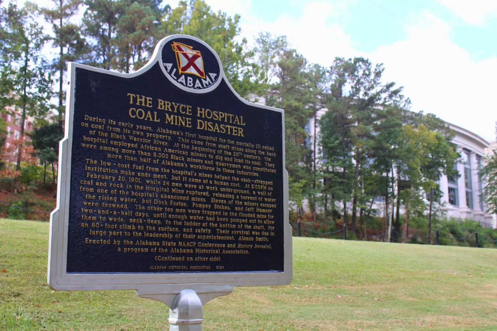 Death and Darkness for Days Source: Tuscaloosa Thread 11 men escaped, and their names are lost to time, at least to date. Three others - Jeff Hamner, Dock Foster and Pompey Stokes - drowned in the disaster. 10 remaining men spent two-and-a-half days in a nightmare, trapped down there in the flooded chambers for 63 hours. They stayed alive on an area of elevated earth where the water did not fully submerge. One newspaper account said they were on dry ground all along, while another said they spent some time standing in icy cold water. Finally, days later, workers on the surface pumped out enough water for the survivors to wade, neck-deep, to the only ladder to the surface. Seven emerged unassisted, and three others had to be raised up in a cage, too weak for the 80-foot climb. Eight of them are pictured below with four white hospital workers after they emerged from their would-be tomb 80 feet underground. Again, the three men who died in the flooded mine are Jeff Hamner, Dock Foster and Pompey Stokes. The 11 survivors are Alonzo Smith, James White, John Stokes, John Quinsy, James Hays, Peter Hodge, Harry Slaughter, Isom Ford, George Morris and William Hargrove. Anyone who believes they may be a descendant of one of these coal miners or who has additional information about the Bryce Hospital Mine and the disaster which led to its permanent closure is encouraged to contact the NAACP. |